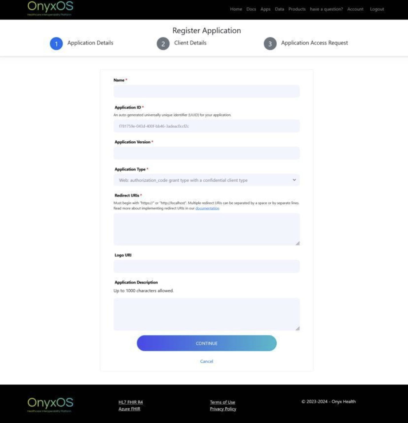 2. Enter the Application details.