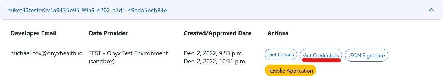 7. Developer accesses approved application request to retrieve credentials