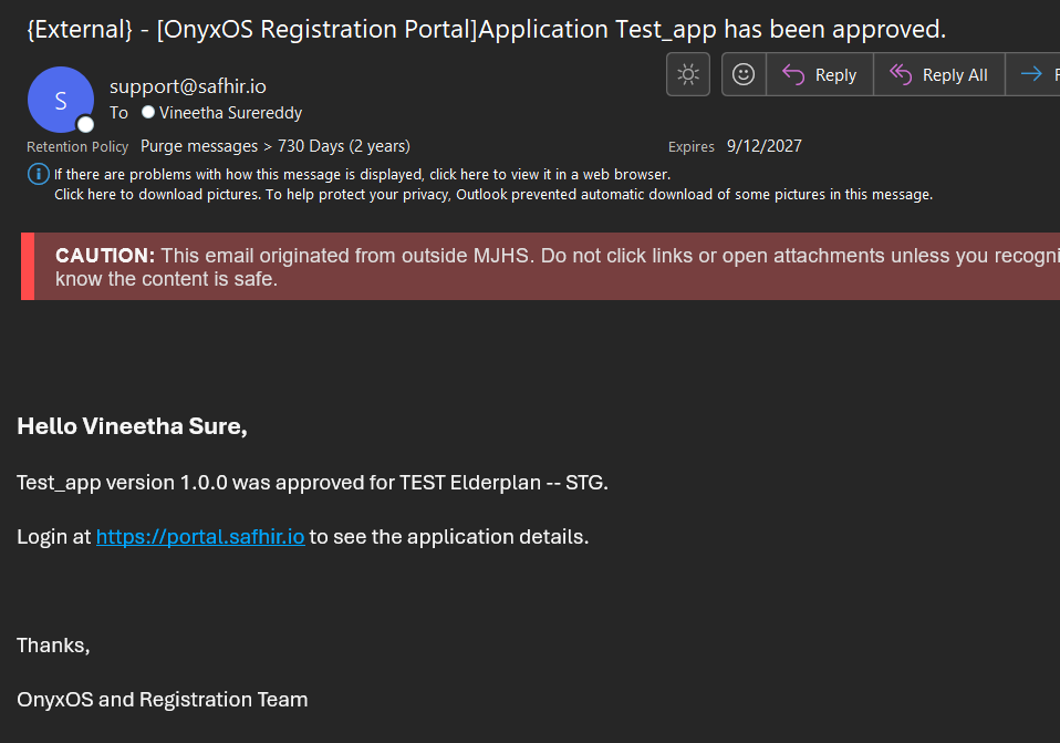 Once the application is approved by the Payer Admin, the developer who submitted the approval request will be notified via email.